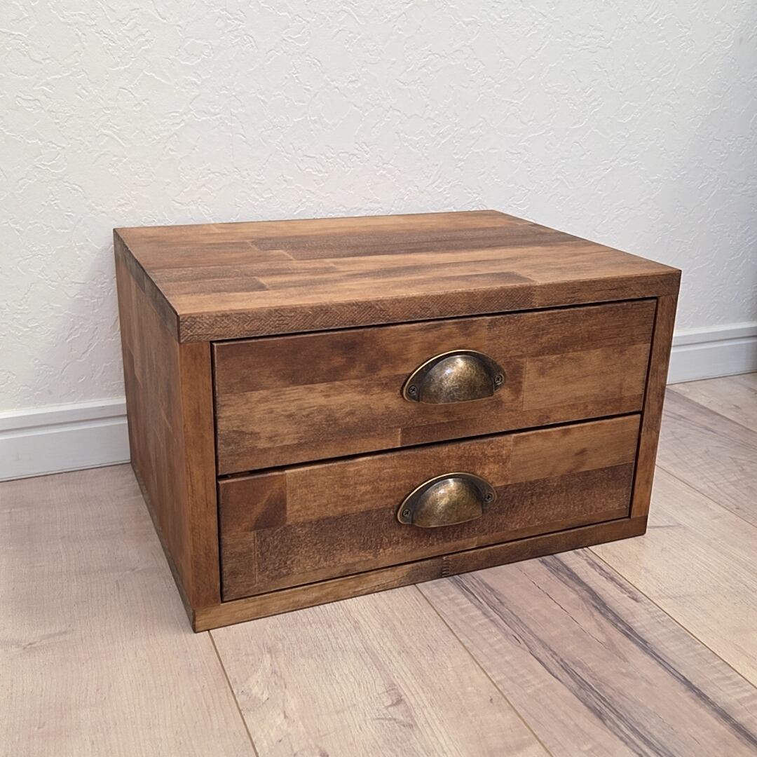 アンティーク風取っ手の卓上チェスト|北欧ナチュラルな木製収納ボックス