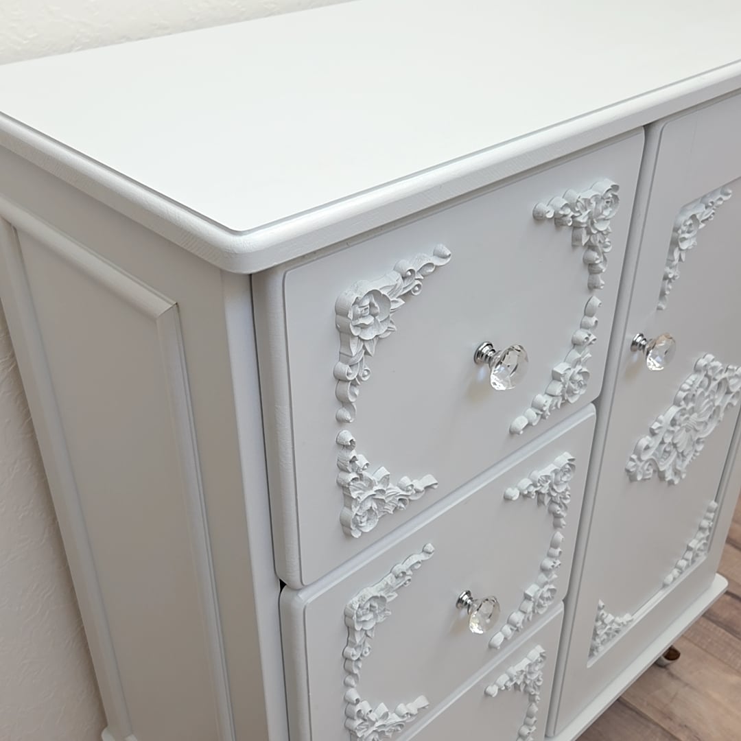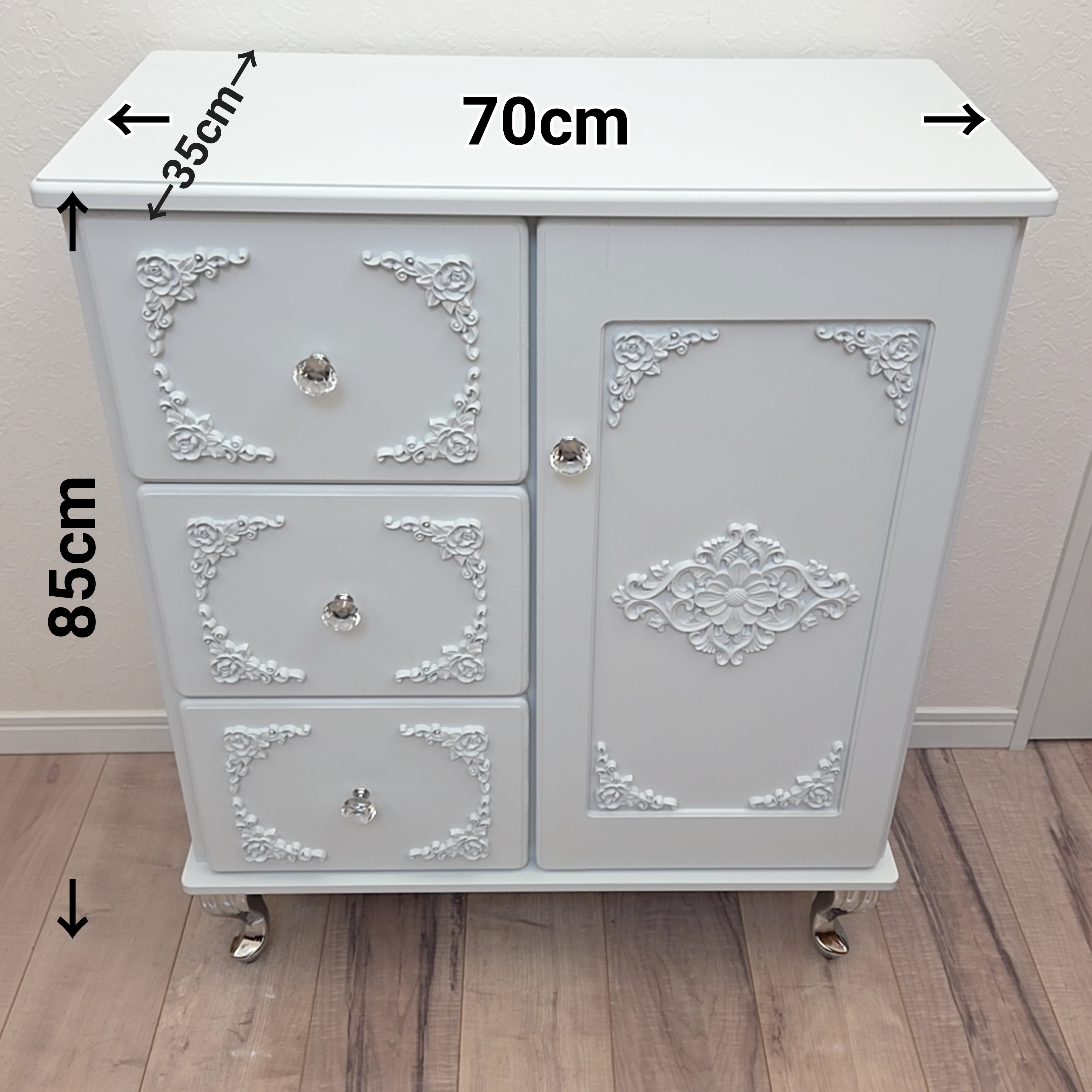 #ハンドメイド家具 #アンティーク風インテリア #エレガント家具 #ホワイトインテリア #収納キャビネット #シャビーシック #ゴールド脚家具 #クラシックインテリア #おしゃれ収納 #姫系インテリア