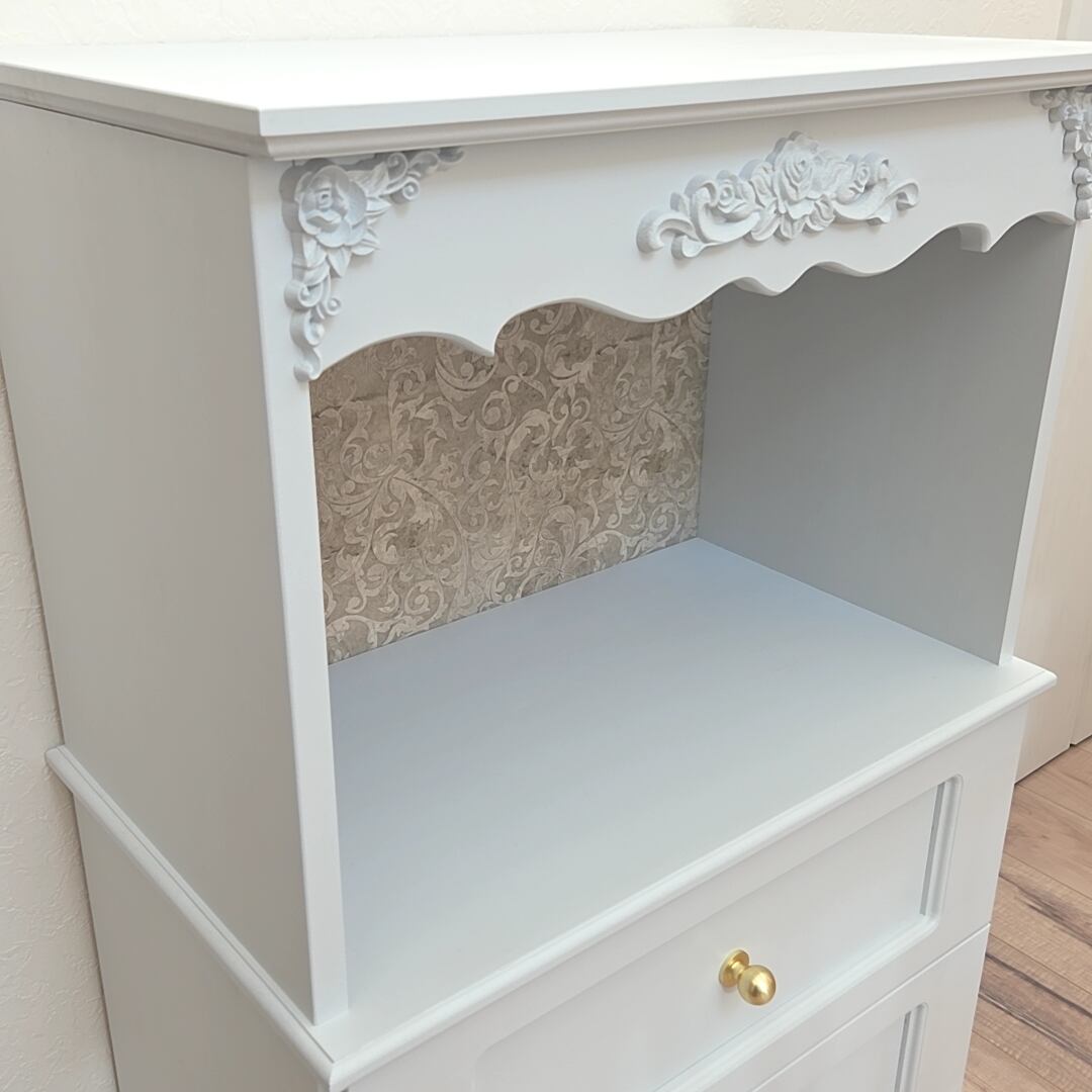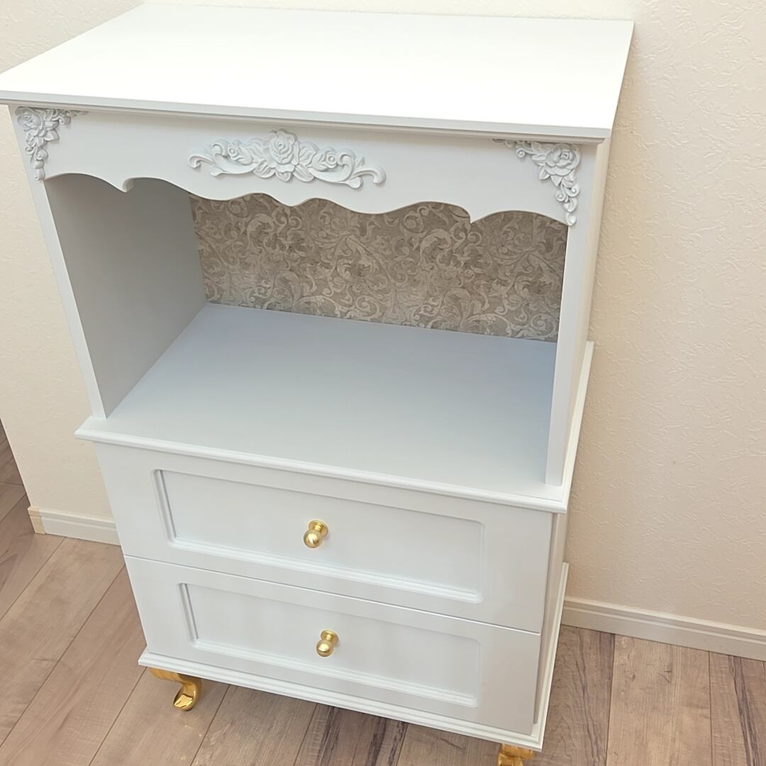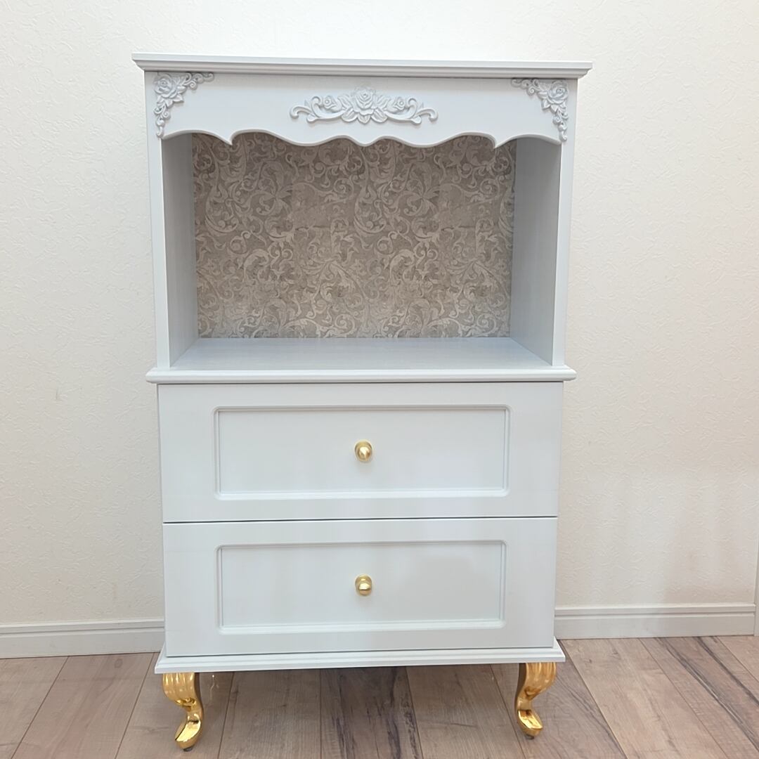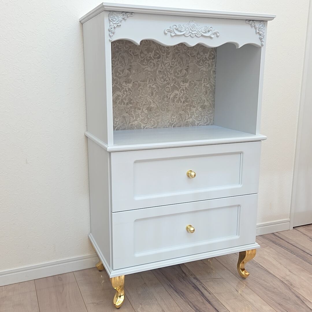 #ハンドメイド家具 #アンティーク風インテリア #エレガント家具 #ホワイトインテリア #収納キャビネット #シャビーシック #ゴールド脚家具 #クラシックインテリア #おしゃれ収納 #姫系インテリア